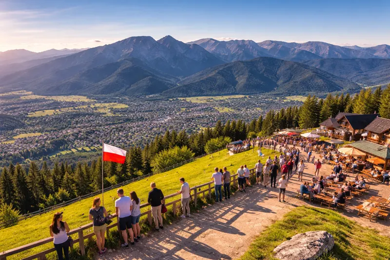 Найкращий сценарій для емоцій — піднятися ближче до заходу сонця. Татри (Tatry) починають «світитися», а Закопане (Zakopane) внизу нагадує теплу мозаїку. Це момент, коли навіть люди, які «не фанати гір», раптом стають фанатами.
