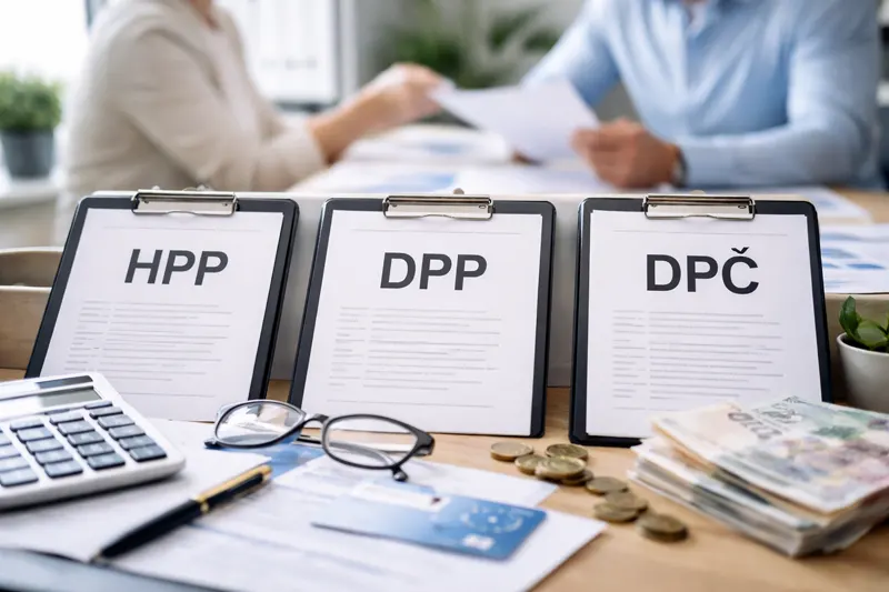 У Чехії є три найпоширеніші формати роботи “за наймом”: HPP (класичний трудовий договір), DPP (коротка підробітка з річним лімітом годин) і DPČ (регулярна підробітка з лімітом навантаження). Вони відрізняються не лише “паперами”, а й страховими внесками, оподаткуванням, правами на відпустку та тим, як легко довести стаж/дохід для різних життєвих ситуацій у Чехії.