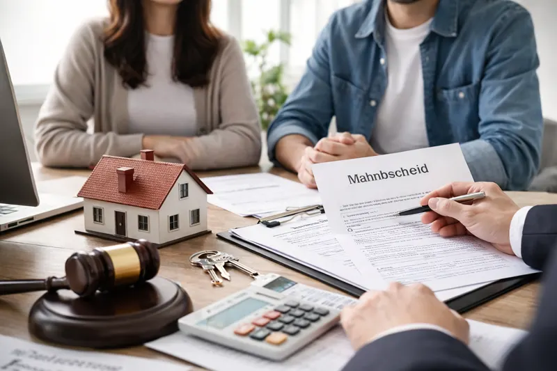 Mahnbescheid — це судовий «платіжний наказ» у межах Mahnverfahren (процедури стягнення боргу). Простими словами: ви подаєте заяву до суду, суд надсилає опоненту офіційну вимогу сплатити. Якщо опонент не заперечує в установлені строки, ви можете перейти до Vollstreckungsbescheid (наказ на примусове виконання) і далі — до примусового стягнення.