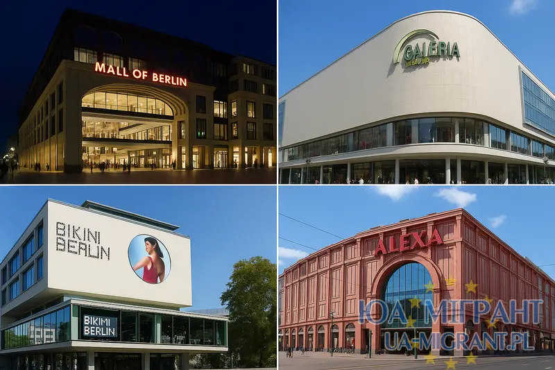 Берлін має багато великих торгових центрів і універмагів, де зручно купувати одяг, техніку, товари для дому та перекусити у фудкорті. Нижче — добірка найбільших і найпопулярніших місць для шопінгу в Берліні, актуальна на сьогодні, з короткими порадами для українців у Німеччині.