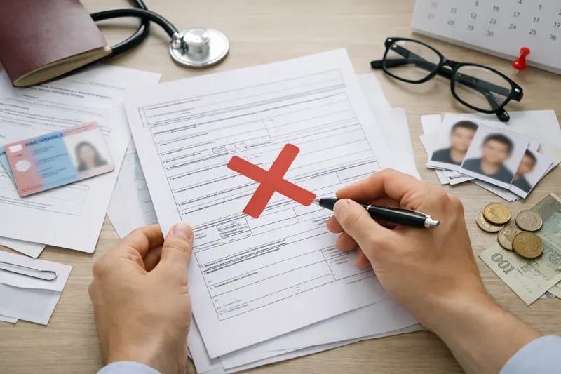 • Помилка №9: відсутнє підтвердження страхування. Часто забувають документ/довідку або подають не той тип підтвердження.
