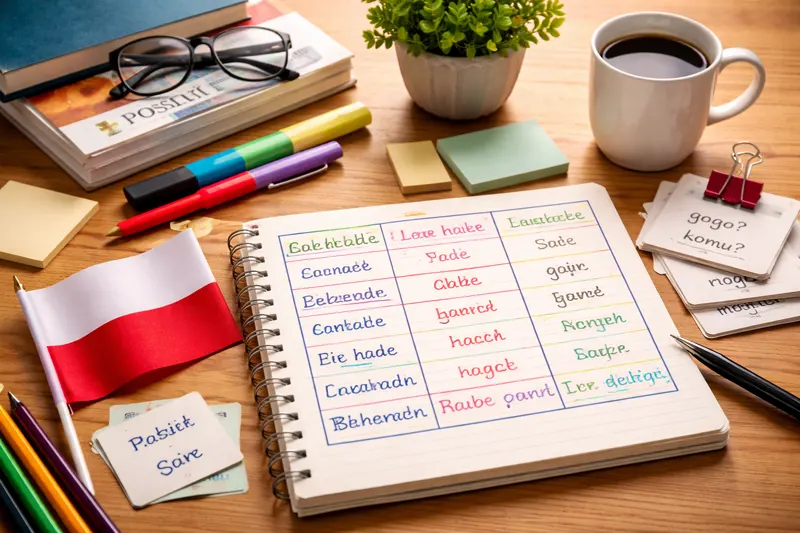 Найкраща стратегія: вчити не «всі закінчення одразу», а прийменник + відмінок і дієслово + відмінок. Тоді польська граматика стає передбачуваною.