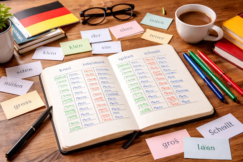 Щоб прикметники «запрацювали», вчіть їх не таблицями, а блоками, які реально потрібні в Німеччині: оренда житла, лікар, школа/садок, робота, покупки.